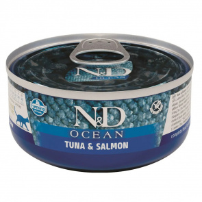 OCEAN CAT влажный корм для кошек с тунцом и лососем, 70 г Outdoor сухой корм для кошек с уткой, рисом и апельсинами, 350 г