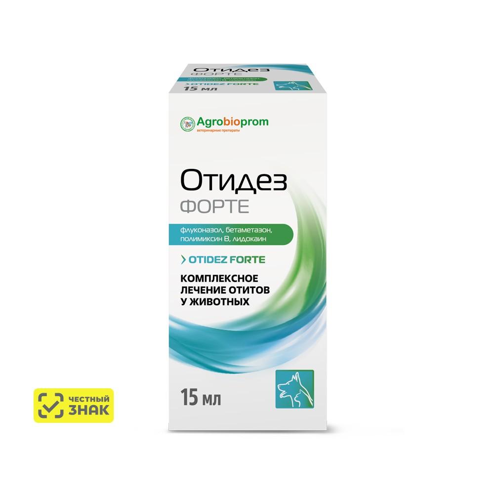 5589 ₽AGROBIOPROM Отидез форте Капли ушные для лечения острых и хронических форм отита у собак и кошек с прополисом, 15 мл (по рецепту)только самовывоз