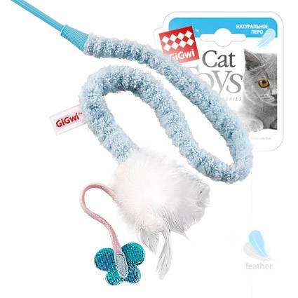 GiGwi Игрушка для кошек Дразнилка на стеке с бабочкой/пластик, перо куриное, ткань 73 см