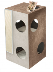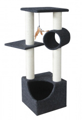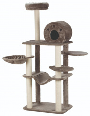 – игровые комплексы, оснащенные гамаками, гнездами, домиками-цилиндрами, несколькими столбиками разной высоты — это отличный вариант для хозяев сразу нескольких котиков или одного очень активного питомца.