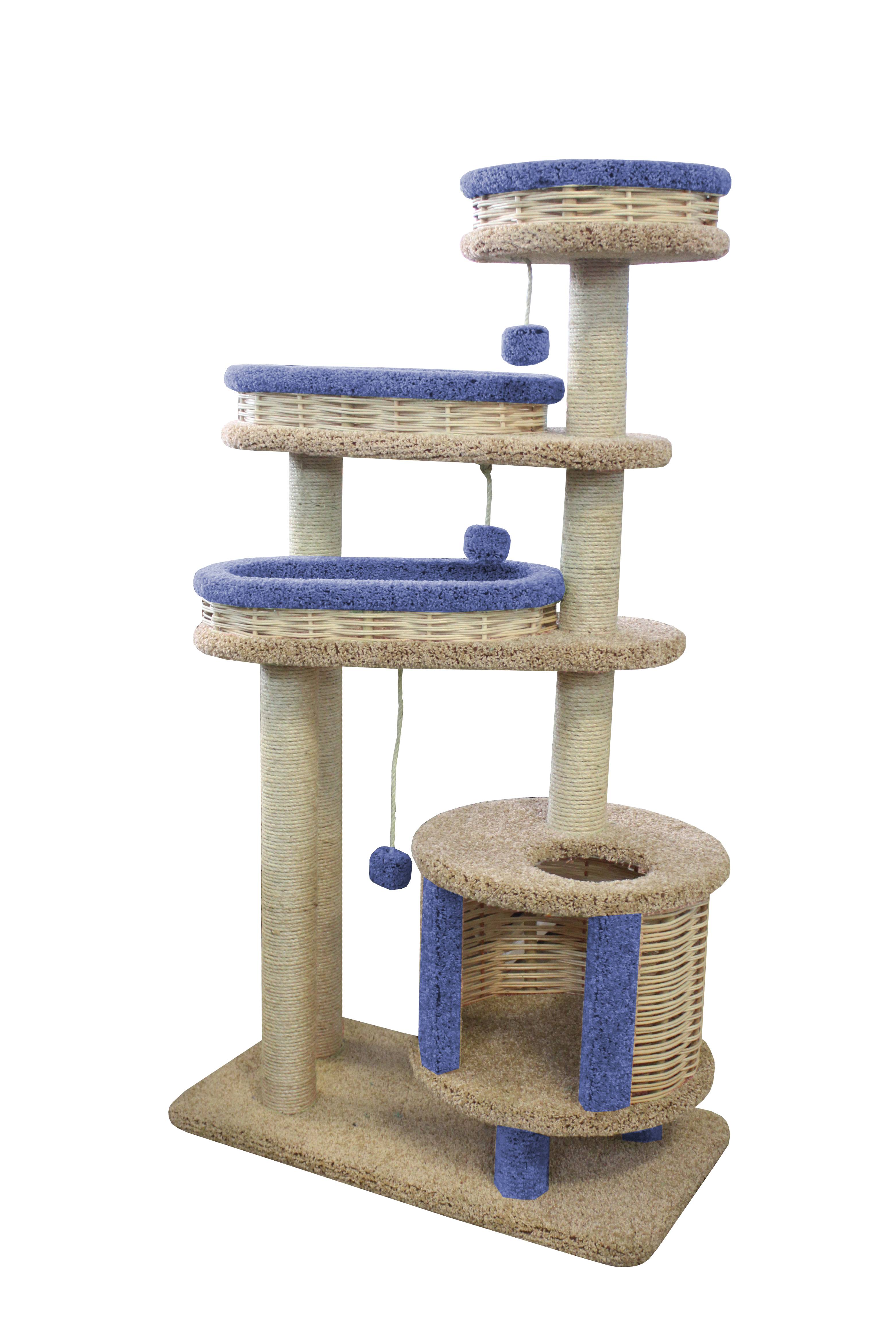 Комплектация: 3 открытые платформы с мячиками на резинке, 3 столбика когтеточки, закрытый домик с отверстием в крыше