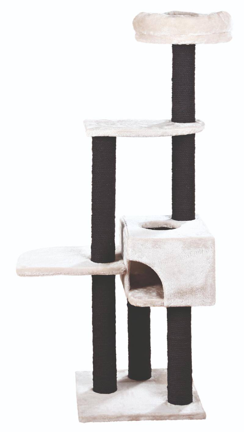 Домик-когтеточка Nita, 147 см, светло-серый плюшевый со столбиками из сизаля и платформой со съёмным лежаком