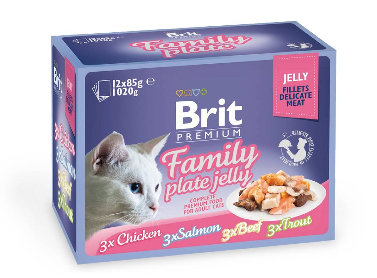 Влажный корм Brit Premium Набор паучей для кошек Dinner Plate Jelly Кусочки в желе 12x85 г - полнорационный влажный корм премиум-класса для взрослых кошек.