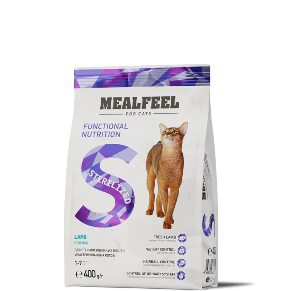 5519 ₽Mealfeel Sterilized Сухой корм для стерилизованных кошек, с ягненком, 400 гр.400 г1,5 кг3 кг7 кг
