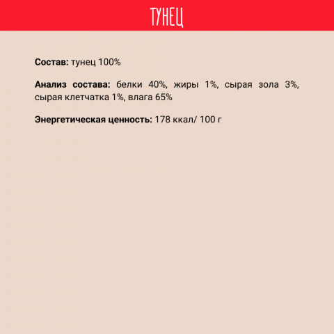 Коту понравился куриный кусок (так как рыбу натуральную он не разу не пробовал), тунец съела собака. Просто кусочки мяса на пару. Цена конечно не дорогая, но по сути очень не выгодное лакомство. Были бы такие кусочки в большой пачке и по более выгодной цене, брала бы постоянно. В целом всем советую, питомцы оценят, думаю попросят добавки.Достоинства