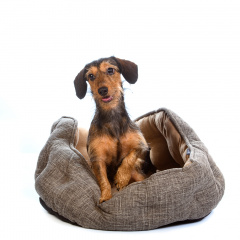 4. Материалы. Для лета можно найти лежак из натуральной хлопковой ткани, джута, искусственной замши. Для холодного сезона производители выпускают лежанки из искусственного меха, велюра, плюша, войлока. Но главное условие — материалы должны быть гипоаллергенными, не иметь запаха, хорошо пропускать воздух и впитывать влагу.