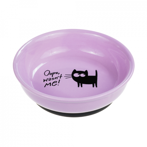 Миска для кошек прорезиненное дно фиолетовая керамика, диаметр 15,5 см.