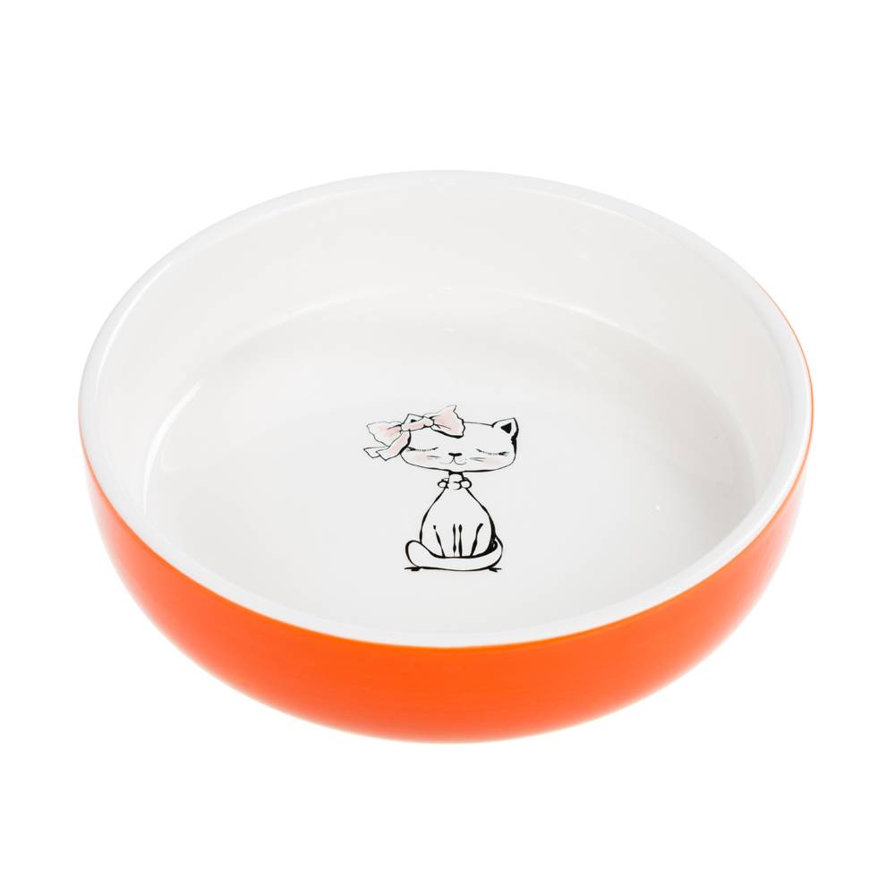 Миска для кошек оранжевая керамика, диаметр 15 см.