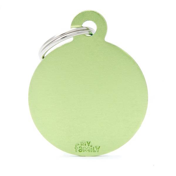 My Family Basic Круглый адресник зелёный большой из базовой коллекции итальянской фирмы My Family поможет вашему питомцу не потеряться. На адресник можно нанести гравировку с вашим телефоном или адресом, и в том случае, если животное сбежало вы сможете быть уверены, что с вами смогут связаться и вернуть беглеца домой. Красивый декоративный адресник крепится к ошейнику, шлейке, поводку, он не погнется, не сломается. Удобное и надежное крепление позволяет перестегивать адресник, если вы решили сменить ошейник или шлейку.