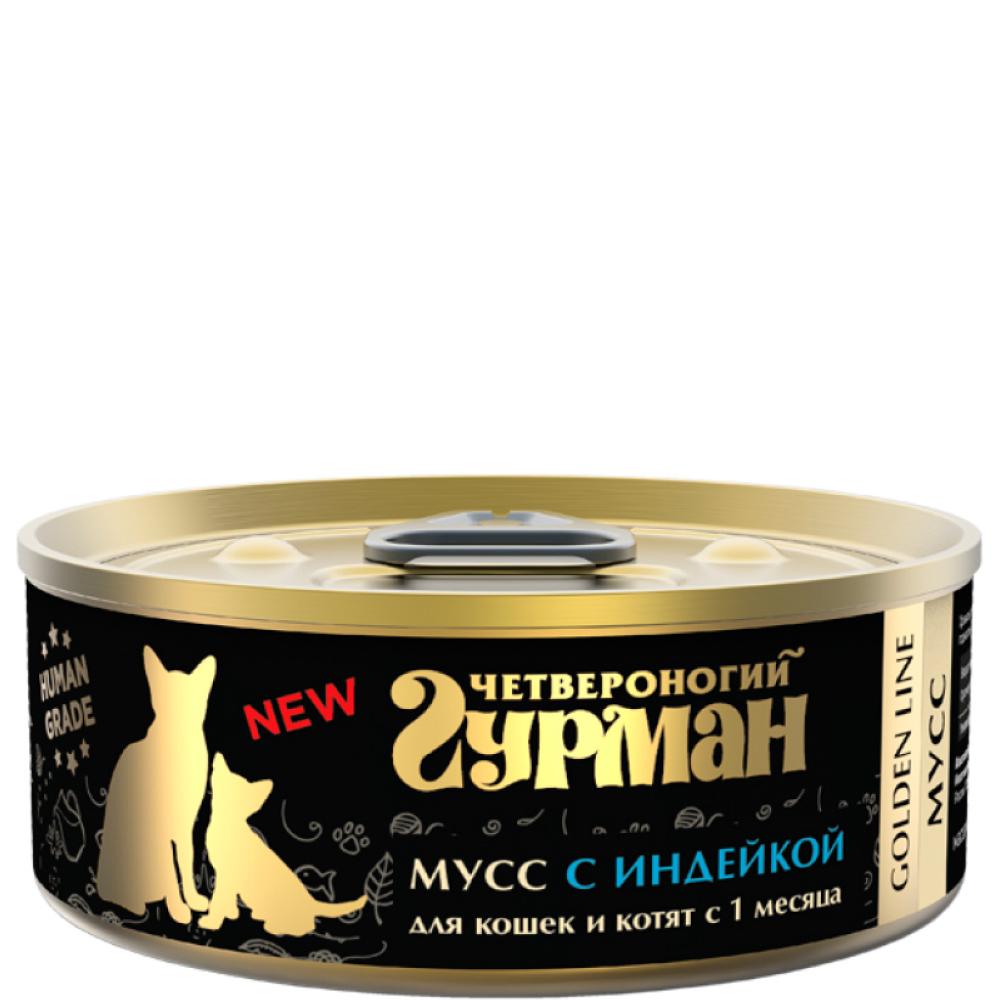 4.9185 ₽Четвероногий Гурман Влажный корм (консервы) для кошек и котят с 1 месяца, мусс с индейкой, 100 гр.
