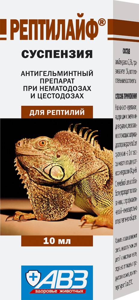 - Первый препарат при гельминтозах рептилий.