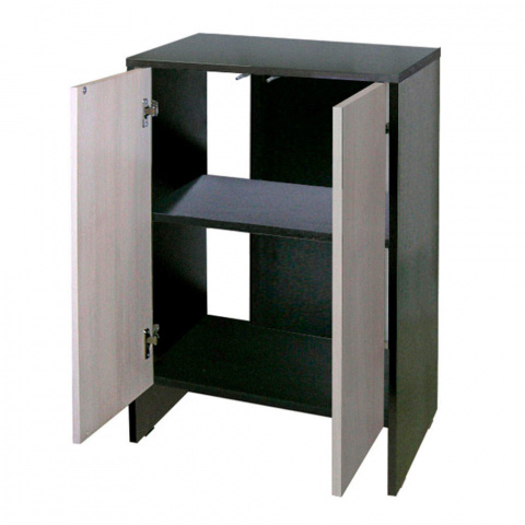 Подставка с 2 дверками TURT-HOUSE AQUA 55/IWAGUMI 55 (корпусвенге/фасады бел.дуб)влаг.плита ЛДСП 16мм кр.ПВХ 0,45/1мм 55*35*82см(шт.)