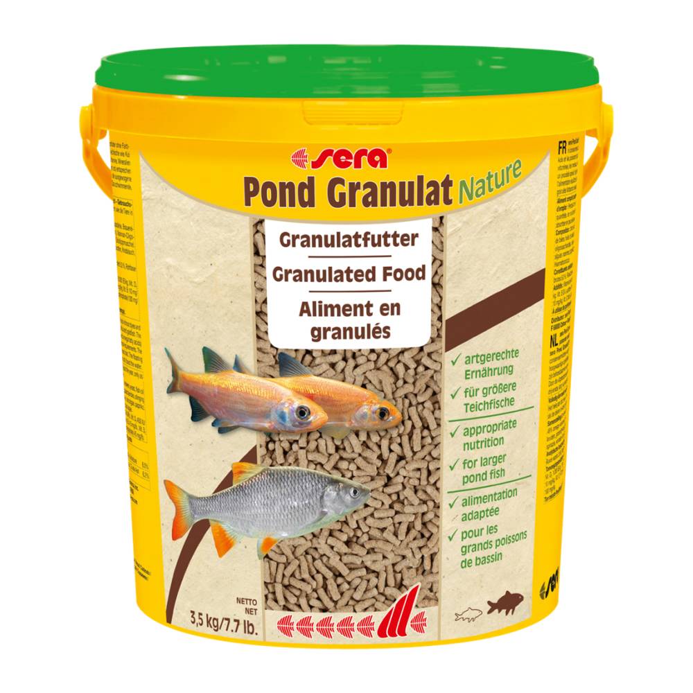 Sera Pond Granulat Nature - основной корм, состоящий из гранул, произведенных путем бережной обработки сырья, без красителей и консервантов; предназначен для всех крупных прудовых рыб, таких как кои и крупные золотые рыбки. Тщательно подобранный состав корма с большим количеством витаминов, минералов и сбалансированным соотношением углеводов и белков, полностью удовлетворяет потребности рыб, что позволяет им оставаться здоровыми и активными. Легко усваиваемый корм способствует здоровому развитию и устойчивости к заболеваниям. Подходит для кормления рыб в течение всего года. Плавающие гранулы корма долго не теряют свою форму в воде и не загрязняют ее.