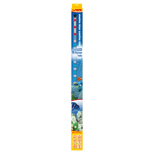 Sera LED Marine Blue Sunrise 820 мм 16W 20 V - светодиодная лампа голубого цвета, естественного для рифов в морских аквариумах. Усиливает эффект флуоресценции. Подойдет для создания дополнительного освещения или создания эффекта лунной ночи.
