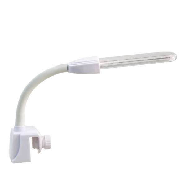 - Светильник на гибкой ножке крепится на край аквариума с помощью пластикового винта, не повреждающего стекло, в том числе акриловое.
