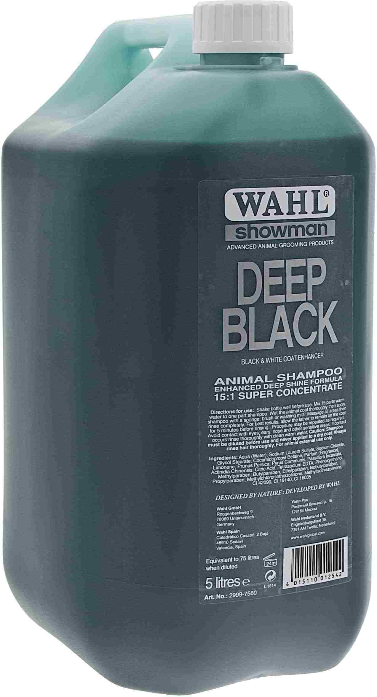 Профессиональный концентрированный шампунь DEEP BLACK. Не содержит вредных и опасных веществ. Основан на натуральных экстрактах персика, киви, груши, страстоцвета. Эффективен к применению на черной и белой шерсти для удаления грязевых и жировых отложений. Восстанавливает натуральную пигментацию и освежает цвет шерсти, придает ей здоровый, шелковистый вид. Применяется для собак, кошек, лошадей, лам, овец, кроликов, хорьков и др.