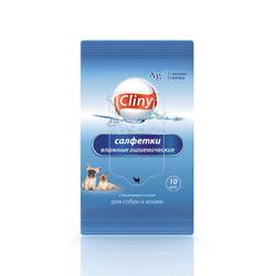 Влажные салфетки «Cliny» 10 штук для всех пород собак и кошек любого возраста. Гигиеническое средство разработано для очищения кожного и шерстного покрова воспитанников от засорений в области глаз, ротовой и носовой полости, а также для устранения ушной серы. Формула наделена обеззараживающими и дезинфицирующими качествами. Рекомендуется применять во время прогулок. Отсутствует спирт.