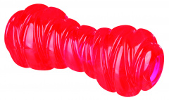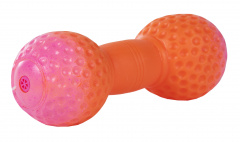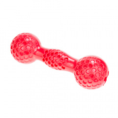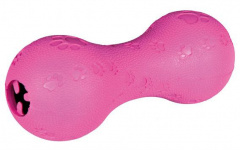 При этом форма и конструкция игрушек может быть разной. Некоторые модели имеют пищалки и бубенчики внутри, ребристую поверхность, мягкие зубчики, отверстия, где можно спрятать корм. Гантели можно катать по поверхности, удобно грызть и носить в зубах. Такие забавы развивают у питомца внимательность, удовлетворяют жевательную потребность и возможность взаимодействия с хозяином.