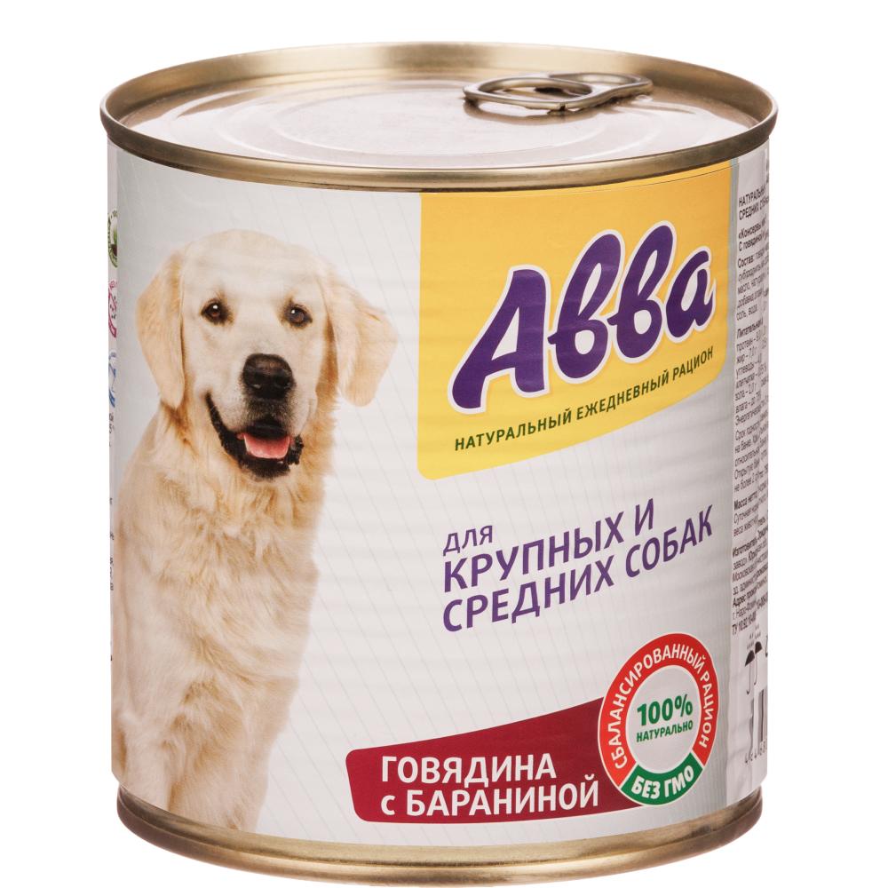 5329 ₽АВВА Влажный корм (консервы) для собак средних и крупных пород, с говядиной и бараниной, 750 гр.