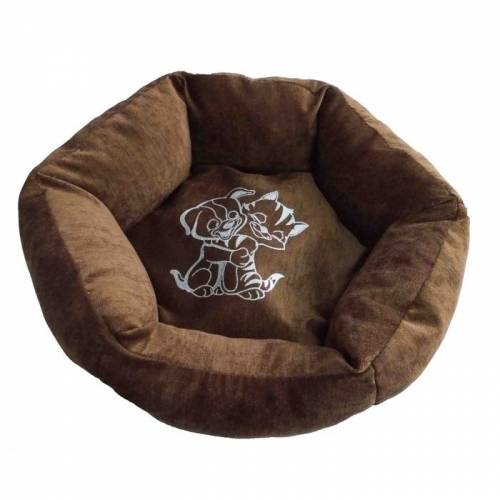 Лежак для кошек и собак ДРИМ-1 круглый коричневый с рисунком, 29х27х23 см