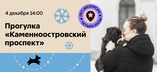 СобакиНовогодняя пет-экскурсия в Санкт-Петербурге21 декабря приглашаем на увлекательную прогулку по праздничному городу