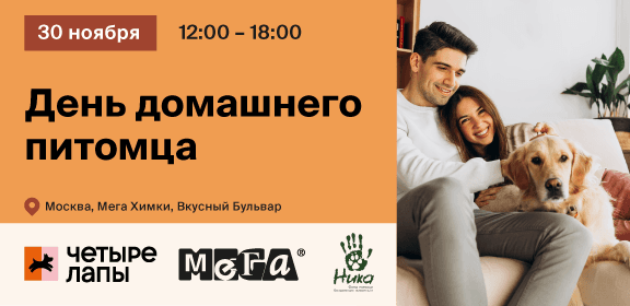 30 ноября, во Всемирный день домашних животных, приглашаем вас и вашего хвостика на «День домашнего питомца», который пройдет в МЕГА Химки.