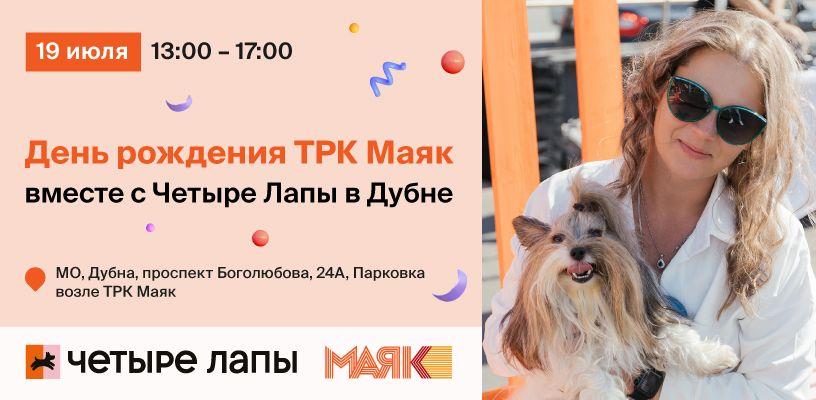 Друзья, 19 июля приглашаем вас на день рождения ТРК «Маяк» в Дубне, где будут рады и вам, и вашим питомцам!