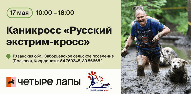 Мы разделяем любовь к питомцам, спорту и экстриму и приглашаем вас 17 мая с 10:00 до 18:00 принять участие в «Русском экстрим-кроссе», партнером которого мы являемся. Успейте принять участие в ярком спортивном событии этой весны вместе со своим четвероногим другом!