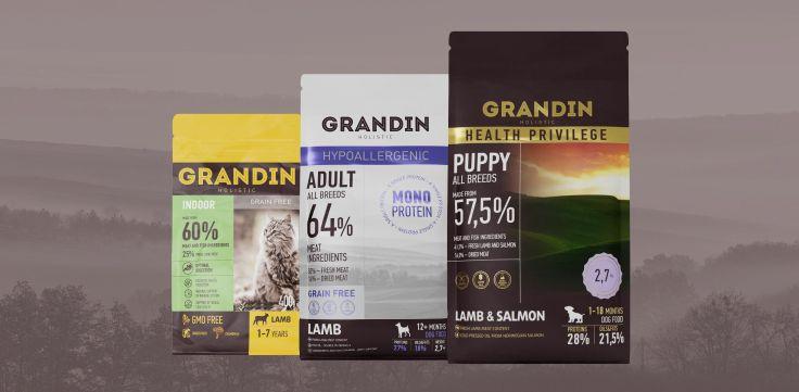 "Фирма Grandin зарекомендовала себя как производитель кормов супер-премиум и холистик классов. Корма данного бренда пользуются популярностью благодаря своему качественному составу. Рационы идеально сбалансированы по всем питательным веществам. В кормах Grandin содержится то количество витаминов, микро- и макро-элементов, которое необходимо для вашего питомца", |