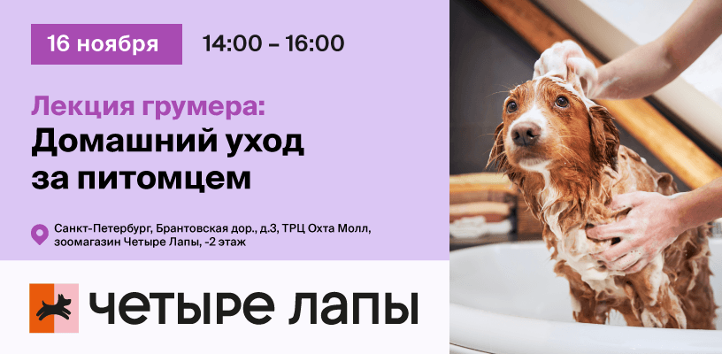 16 ноября приходите на лекцию грумера «Домашний уход за питомцем», где вы узнаете, как делать правильно.