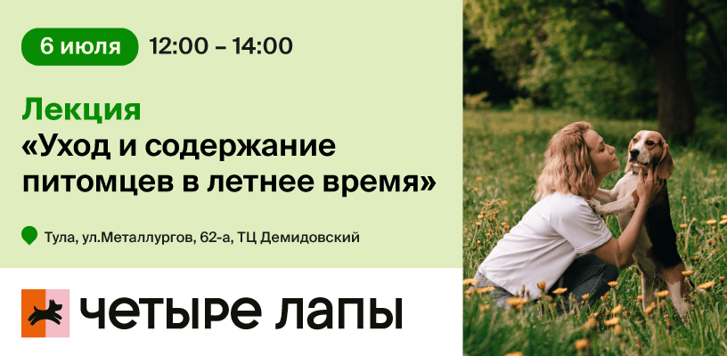 Приглашаем на интерактивную лекцию с призами «Уход и содержание питомцев в летнее время» в Туле.