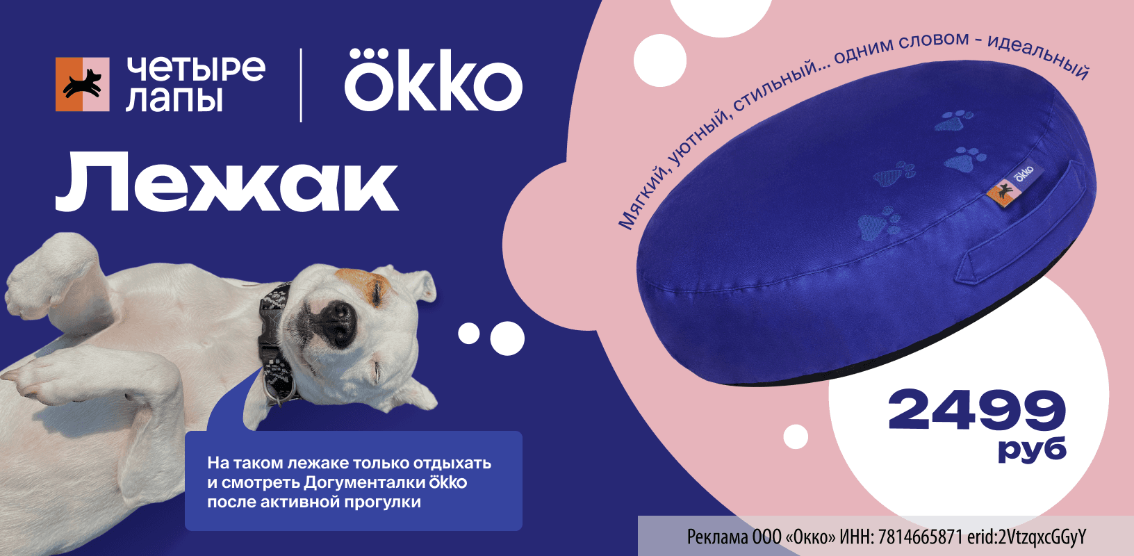 Специально к запуску «Догументалок» — первых фильмов для собак от Okko – Четыре Лапы и Okko объединились, чтобы представить лимитированную коллекцию лежаков для питомцев! Мягкие, стильные и невероятно удобные – они идеально впишутся в любой интерьер.