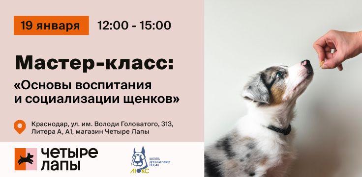 Мы рады пригласить всех пет-родителей щенков и тех, кто только планирует им стать, на наш мастер-класс «Основы воспитания и социализации щенков», который пройдет 19 января в нашем магазине в Краснодаре.