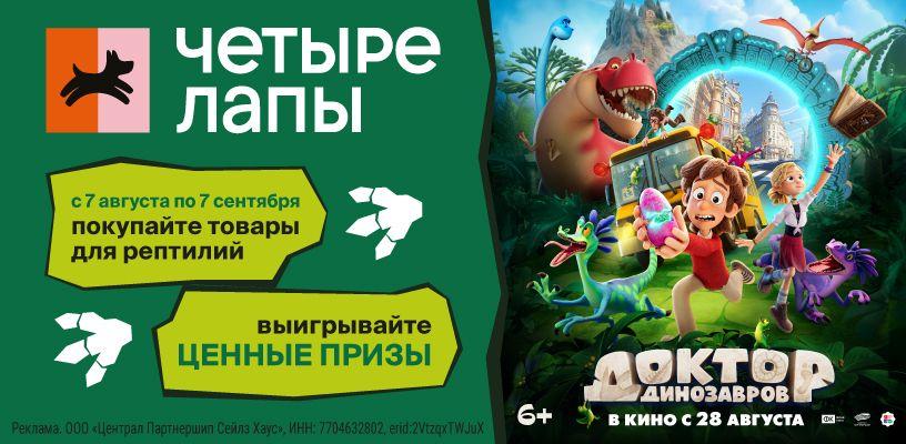 Совместно с кинокомпанией «Централ Партнершип» мы запускаем акцию, в которой вы можете выиграть сертификаты на поход в кино на анимационный фильм «Доктор Динозавров» в любом удобном для вас кинотеатре, а также 5 подарочных наборов от создателей мультфильма.