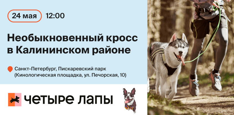 24 мая благотворительный забег Необыкновенный кросс пройдет в Калининском районе Санкт-Петербурга. Мы приглашаем всех любителей активного отдыха с питомцами разделить этот день с нами.
