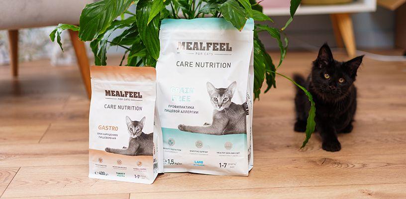 Профилактическая линейка кормов Care Nutrition для взрослых кошек и котов от бренда Mealfeel – это полнорационное питание, разработанное специально для поддержания здоровья, бодрости и высокого качества жизни усатых любимцев.