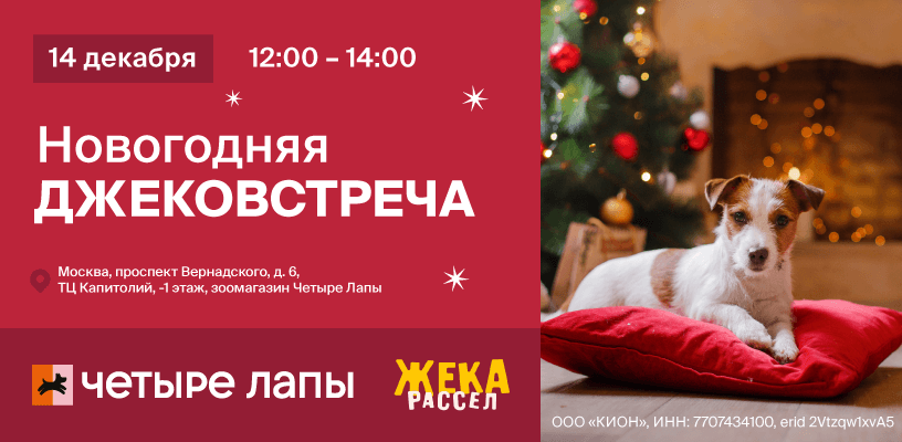 Этой зимой в онлайн-кинотеатре КИОН состоится премьера сериала «Жека Рассел» — четвероногой новогодней комедии с очаровательным джек-расселом в главной роли. На нашей зимней встрече будем знакомиться, красоваться в новогодних костюмах, участвовать в конкурсе от КИОН и выигрывать ценные призы!