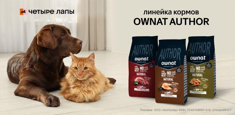 1. Линейка Ownat Author – это высококлассные полнорационные корма для кошек и собак, в составе которых 60% свежего мяса.