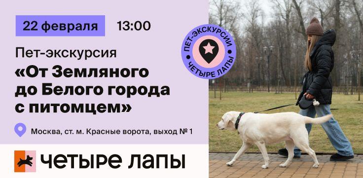 Приглашаем Вас с питомцем на нашу пет-экскурсию от станции метро Красные ворота по Мясницкой улице до станции метро Чистые пруды, которая пройдет 22 февраля.