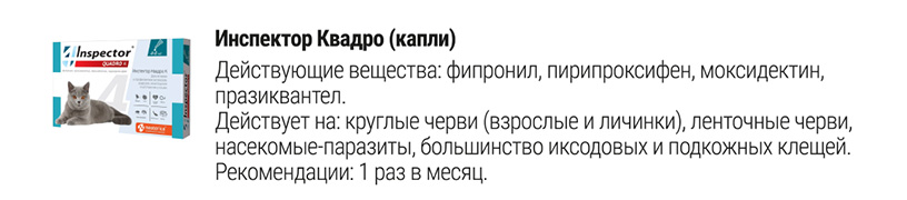 1. Все антипаразитарные средства в ветаптеке Четыре Лапы прошли необходимые проверки, разрешены к применению, являются оригинальным товаром и хранятся в надлежащих условиях.