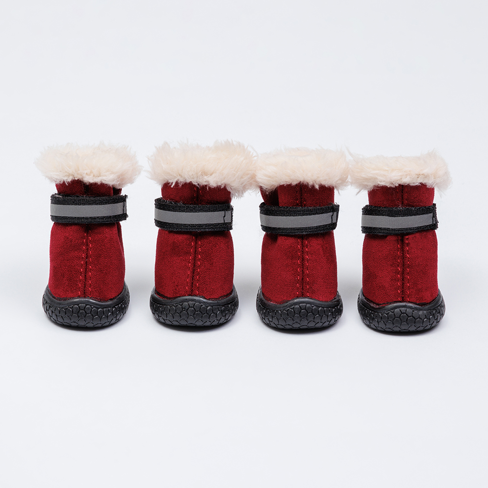 Благодаря застежкам-липучкам ботинки хорошо держатся на лапах, при этом не сдавливая их. Обувь имеет антискользящую подошву и стильный дизайн.
