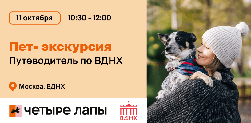 зья, приглашаем на познавательную прогулку с питомцами по одному из красивейших исторических ансамблей под открытым небом – ВДНХ, в архитектуре которого отразилась история страны за последние 86 лет.