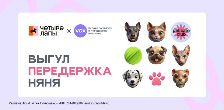 Мы в Четыре Лапы активно развиваем пет-сервисы для питомцев и спешим познакомить вас с нашим новым партнером VOX по выгулу, передержке и услугам зооняни.