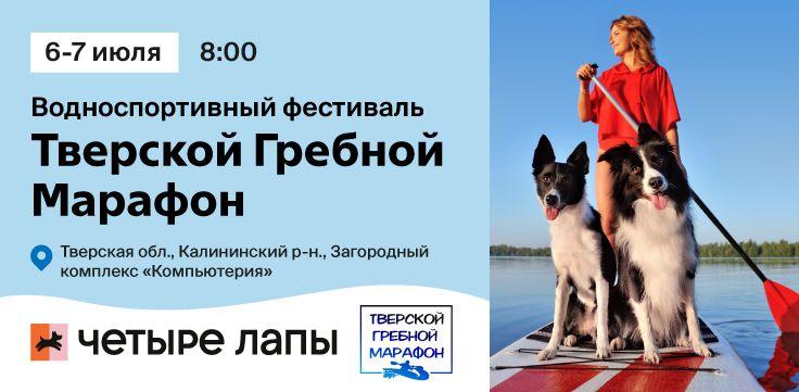 Питомец разделяет ваши увлечения? Вы катаетесь с ним на САП-борде или байдарке? Тогда вы просто обязаны посетить DOG-FRIENDLY водноспортивный фестиваль «Тверской Гребной Марафон», который пройдет 6 и 7 июля 2024 года при поддержке компании Четыре Лапы.