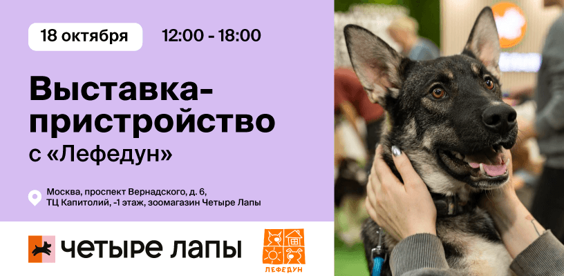 Друзья! Приглашаем вас на выставку-пристройство кошек и собак, которая пройдёт в эту субботу, 18 октября в ТЦ «Капитолий» совместно с АНО «Лефедун».