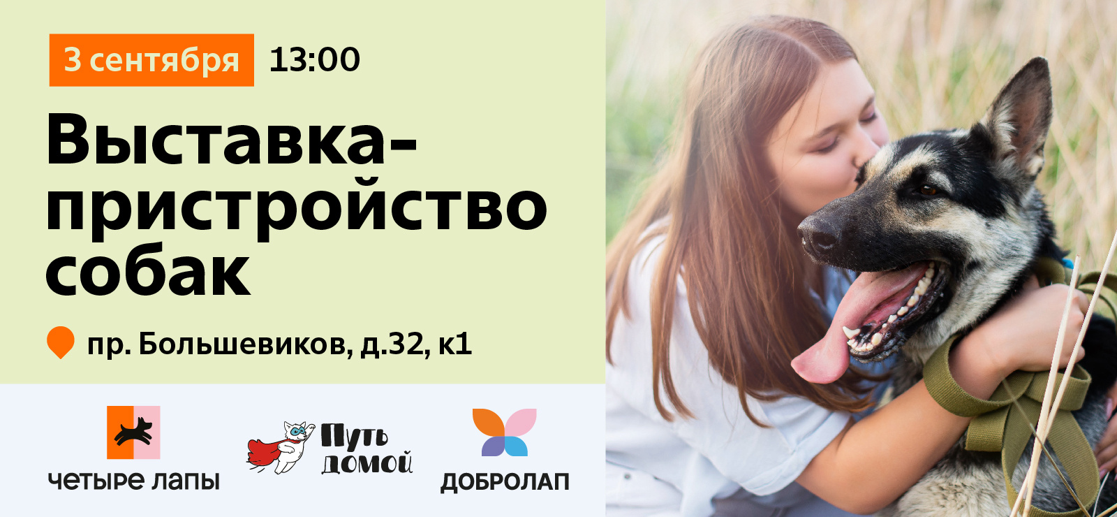 3 сентября в Санкт-Петербурге пройдет выставка-пристройство собак, организованная совместно с проектом «Путь домой» в рамках благотворительной акции «Добролап».