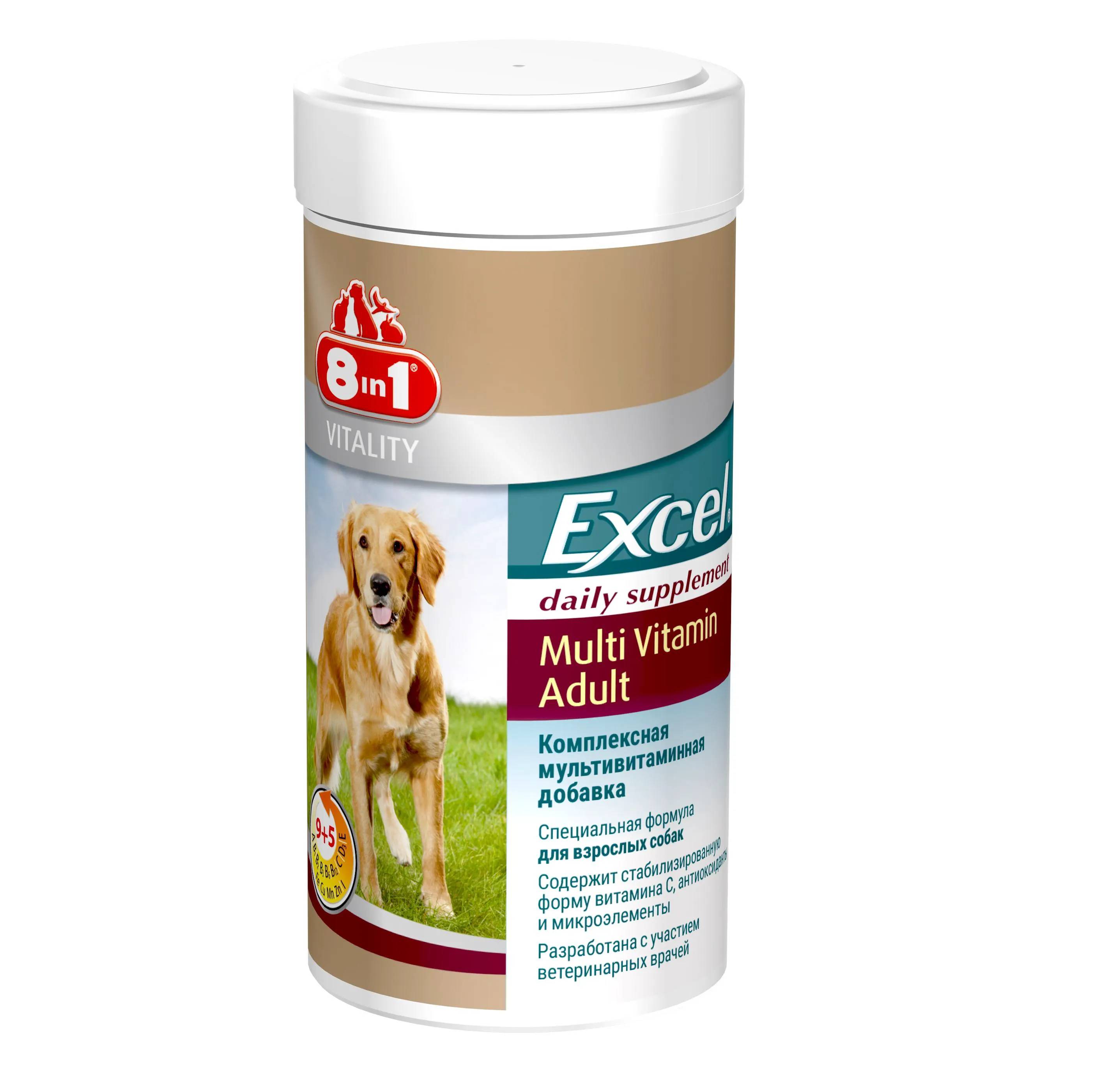 Эксель Мультивитамины для взрослых собак – комплексная витаминно-минеральная добавка, специально разработанная для удовлетворения потребностей взрослых собак. Сбалансированная формула необходимых витаминов и микроэлементов помогает предотвратить проблемы, связанные с неполноценностью рациона и помогает вам сохранять собаку активной и здоровой.