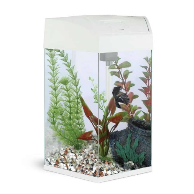 - Классический шестигранный аквариум из силикатного стекла, цвет - белый.