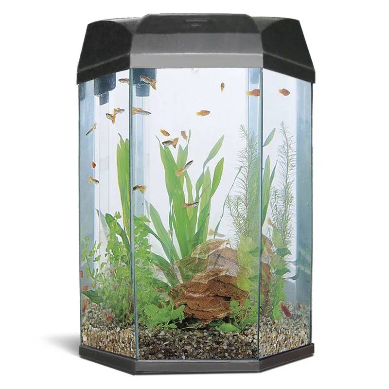 - Классический шестигранный аквариум из силикатного стекла, цвет - черный.
