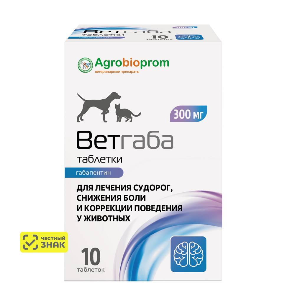 Лекарственный препарат Ветгаба таблетки относится к фармакотерапевтической группе: противоэпилептические средства. Лекарственный препарат Ветгаба таблетки содержит действующее вещество - габапентин, которое по строению сходно с нейротрансмиттером гамма-аминомасляной кислотой (ГАМК). Точный механизм действия габапентина неизвестен, но он отличается от механизма действия других препаратов, взаимодействующих с ГАМК-рецепторами. Габапентин уменьшает гибель нейронов, способствует увеличению синтеза ГАМК, подавляет высвобождение нейротрансмиттеров моноаминовой группы, снижает поток ионов кальция, которые играют важную роль в возникновении нейропатической боли. У животных габапентин легко проникает в ткани головного мозга и предотвращает судороги, спровоцированные электрошоком, химическими конвульсантами, в том числе ингибиторами синтеза ГАМК, а также в случае генетических моделей судорожных синдромов. После приема лекарственного препарата внутрь максимальная концентрация габапентина в плазме достигается через 2-3 ч. Биодоступность габапентина не пропорциональна дозе. Так, при увеличении дозы она снижается. Прием корма не оказывает влияния на фармакокинетику. Габапентин практически не связывается с белками плазмы, выводится почками в неизмененном виде, метаболизму не подвергается. Клиренс габапентина из плазмы снижается у пожилых животных и больных с нарушенной функцией почек. Лекарственный препарат Ветгаба таблетки по степени воздействия на организм относится к малоопасным веществам (4 класс опасности по ГОСТ 12.1.007-76).